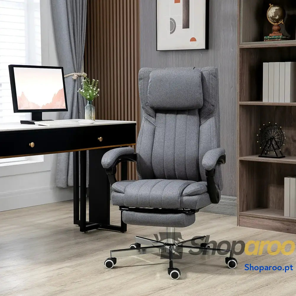 Está a procurar uma cadeira cómoda para o seu escritório ou secretária? Esta cadeira Vinsetto com apoio de pés retrátil e função de massagem é a melhor opção! Com base sobre rodas, elevador topo de gama, apoios de braços acolchoados e massagem vibratória, esta cadeira é ideal para trabalhar e descansar ao mesmo tempo. Além disso, o encosto reclinável em até 135º é perfeito para aliviar a tensão após um longo dia de trabalho ou para fazer uma pausa e poder relaxar